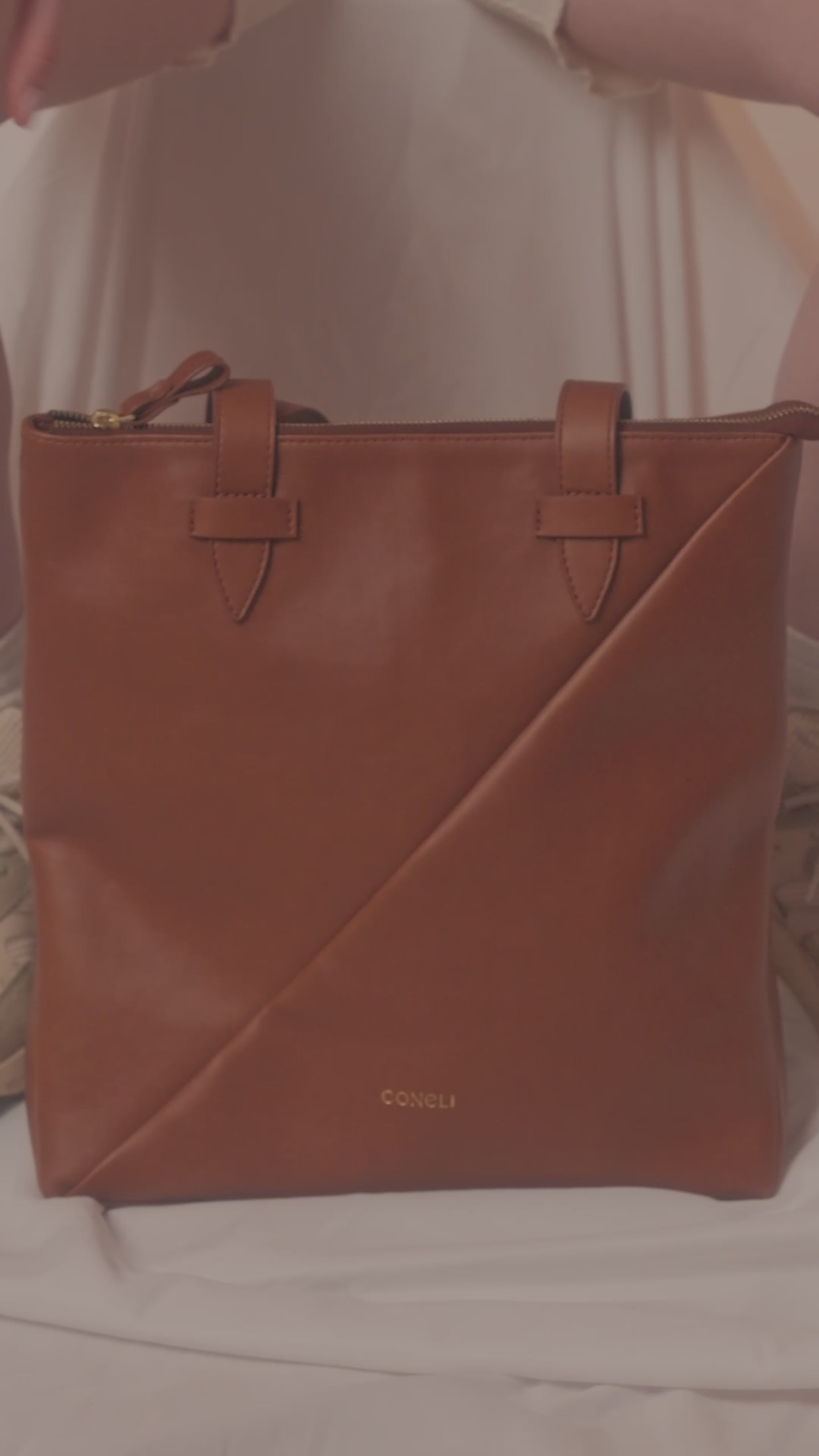 Our Coneli Tote—a elegant bag designed to adapt to your day. With just a few adjustments, it easily transforms from a stylish Tote into a functional Backpack.