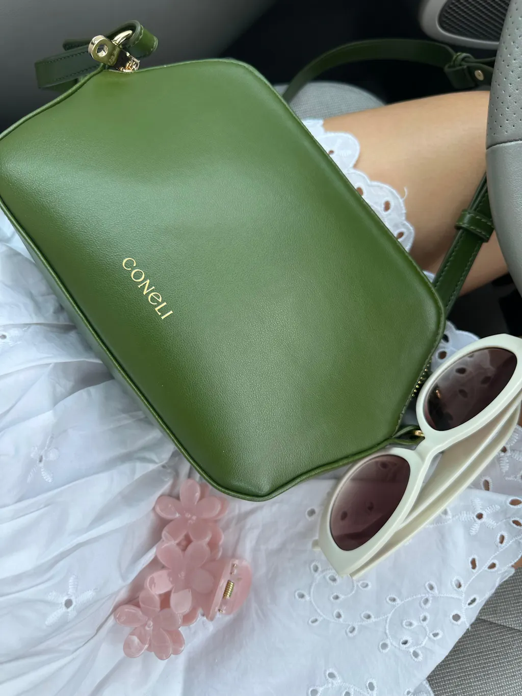 Inside you find a card holder and the bag is roomy enough to fit your phone, credit cards, lip balm, portemonnaie, AirPods and more, all while staying hands-free.